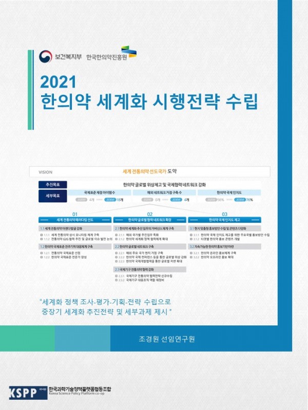 한의약 세계화 시행전략 수립 관련링크 페이지 정보 작성일22-03-03 13:13 조회5,950회 본문 한의약 정책의 글로벌 역량 강화를 위한 정책 조사 및 대안 제시 이전글 다음글 목록